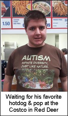 There can be many benefits from being a frequent visitor to the same places. At retail businesses, the staff get to know you by sight, and, if you encourage interaction, by name. We are regulars at Costco. Eric is hard to miss; he is 6 feet tall, has big movements and unusual vocalizations, can have a patterned gait to his steps, and is often scripting (repeating favorite lines from movies or games). Sometimes he is wearing his humorous autism t-shirts, which also draws friendly people to us. Even other regular customers often come and speak to us.