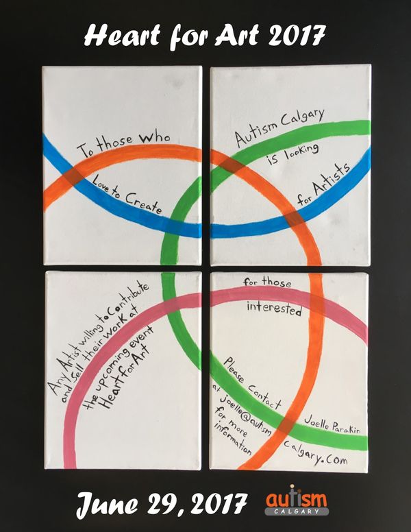 Heart for Art is an annual event on Stephen Avenue in downtown Calgary held by Canadian Artists for the Poor. The event allows local artists to showcase and sell their art. Registration and other fees are donated to local and international charities. Autism Calgary will be having a booth to display and sell art by artists on the autism spectrum. If you are interested in having your art in our booth please fill out the attached form and email it to Joelle at joelle@autismcalgary.com by June 15th, 2017.