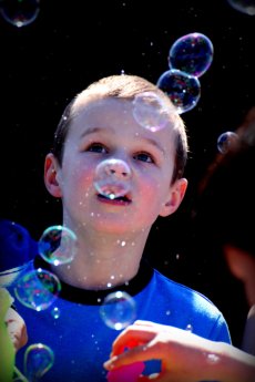 At 12:30 the Mayor arrived, and at 12:40 we headed outside. To say that there were a million bubbles in a sea of blue is no exaggeration! The kids had a blast – they were excited, they were understanding, and they were supportive!
