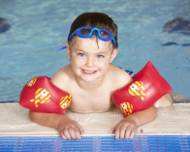 Swimming lessons can sometimes be difficult for children, both those who are typical and those who are on the spectrum. They have to deal with splashing, very excited peers, the echo of an indoor swimming, the feel of the water on your skin, and having to listen for instructions through it all!